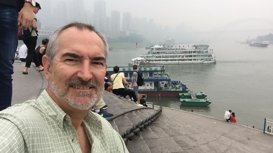 钟情中国山水的史蒂夫游览重庆朝天门码头