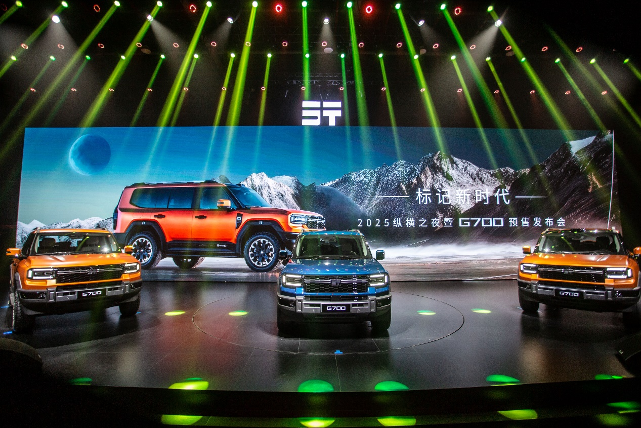 【中国汽车趋势网讯】9月19日,以“标记新时代”为主题的2025纵横之夜暨G700预售发布会在上海盛大开幕。“全领域豪华电混越野SUV”G700全球预售正式开启,共推出4款配置车型,预售价34.99万-42.99万元,提供纵享自由礼、纵享奢享礼、纵享星联礼、纵享焕新礼、纵享金融礼、纵享限定礼、纵享悦野礼、纵享补能礼八大预售权益,订购不同车型享受不同礼遇,提前锁定多元购车惊喜。集更硬核、更豪华、更智能、更尊享四大核心技术于一身,G700将以“豪华越野新坐标”之姿,为全球用户带来突破想象的百万级越野新体验,标记中国豪华越野新时代!