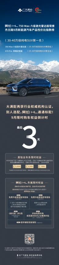 【中国汽车趋势网 10月1日讯】十月国庆黄金周将至,正是家庭购车、换车的高峰期。广汽昊铂HL增程版自8月19日上市以来,凭借“大满配”的产品实力与持续走高的市场热度,成为30万级新能源SUV市场中不可忽视的热门车型。近日,广汽昊铂HL更以出色的销量与性价比表现,赢得权威机构与消费者的双重认可。