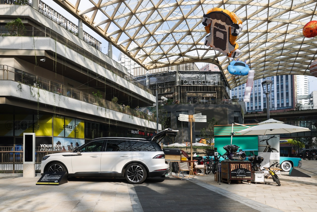 以飞行器为设计灵感的林肯飞行家,自带优雅与力量平衡的特质,现场聚焦户外生活主题打造专属“户外咖啡驿站”车辆停驻于新天地东台里,后备箱化身移动咖啡吧,游客可在玩车节慢品醇香,感受户外休闲与豪华出行的融合。