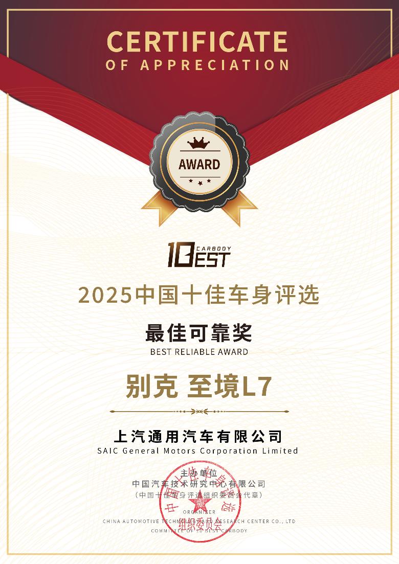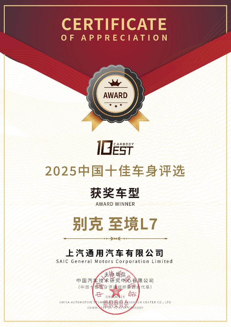 【中国汽车趋势网 10月15日讯】近日,别克品牌宣布,至境L7凭借全方位安全表现,获得权威评审专家的一致认可,荣膺“2025年中国十佳车身”。至境L7基于百万级“逍遥”超级融合架构打造,在结构设计、材料选用、电池安全等方面均展现出领先同级的实力,充分彰显别克品牌坚守品质底线,始终为用户新能源安全出行保驾护航的责任担当。