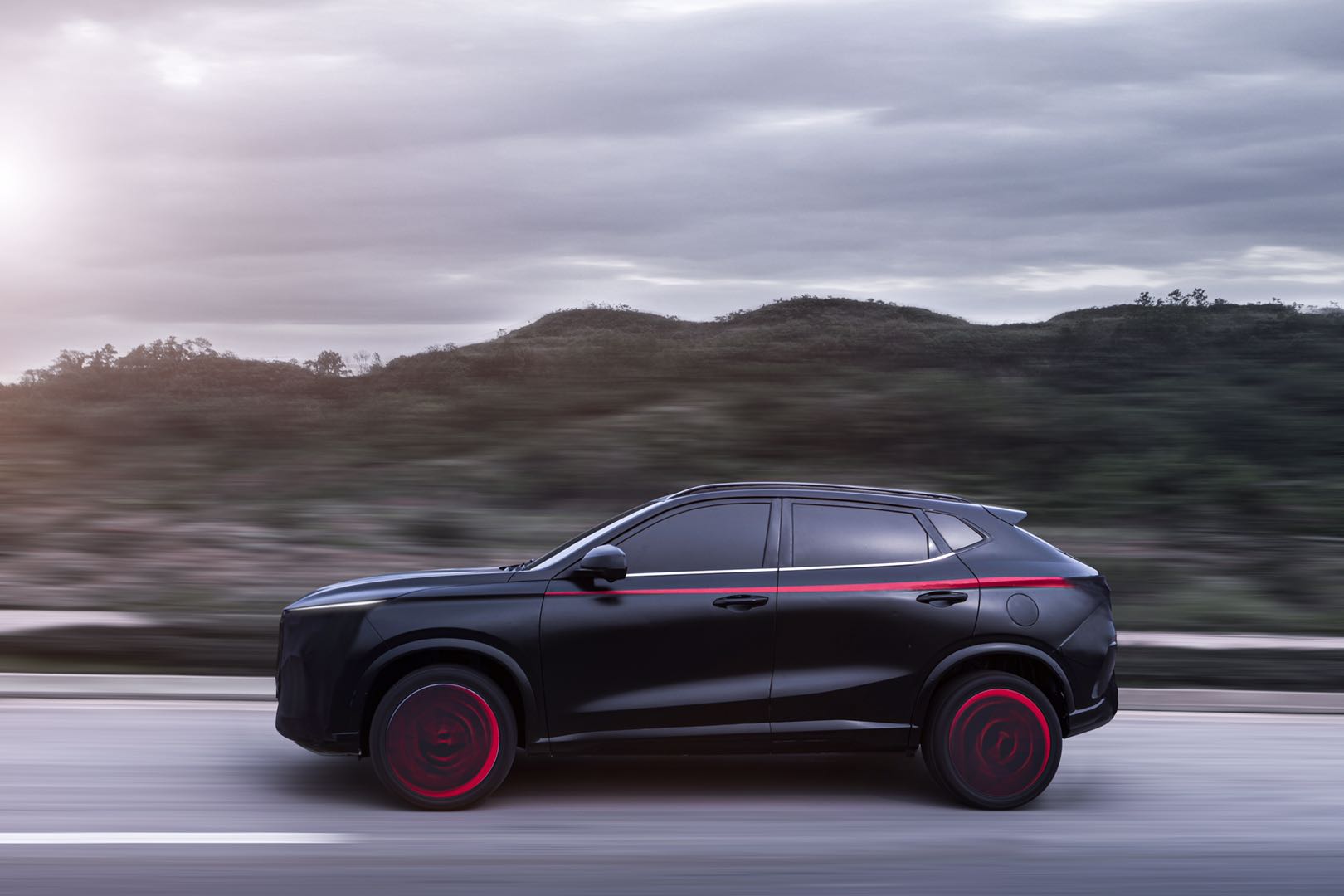 前脸部分,该车日间行车灯形状细长,线条平直凌厉,充分迎合现代年轻人的视觉审美。侧面部分,流畅、动感的车身腰线由前大灯一直贯穿到尾灯,呈延伸上扬状,刻画出SUV车型向前俯冲的车身姿态。