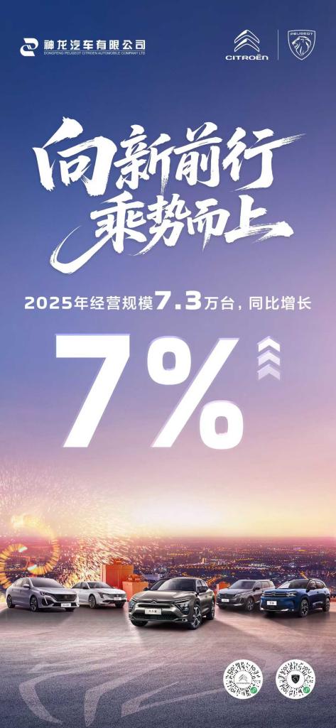 【中国汽车趋势网 1月4日讯】2025年,神龙汽车通过营销深化、品质坚守及协同赋能等系统化举措,推动经营实现稳健增长,同比增长7%,整体发展态势持续向好。不仅体现了企业的增长韧性,也为神龙汽车的复兴之路奠定了坚实基础。