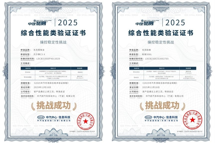 产品层面,神龙汽车旗下车型更经受住了严苛考验。在中汽中心进行的夏季高温测试中,东风雪铁龙凡尔赛C5 X凭借在健康和操控安全层面的卓越表现,勇夺“健康与操控双安全”权威认证,令业界瞩目;年末,东风雪铁龙凡尔赛C5 X与东风标致508L又在极寒驾控安全验证中,凭借卓越的操控稳定性双双斩获“操控稳定性挑战”认证证书,展现了法系底盘技术应对极端环境的深厚功底。这些权威背书,不仅验证了神龙汽车产品在极端环境下的可靠性与安全性,更强化了“法式驾控”与“安全可靠”的核心品牌价值,成为赢得用户信赖的基石。