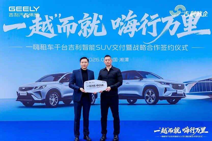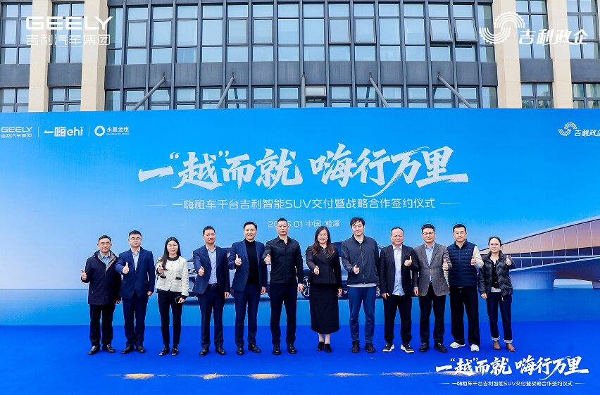 【中国汽车趋势网讯】2026年1月18日,一嗨租车千台吉利智能SUV交付盛典暨战略签约合作仪式在吉利湘潭基地隆重举行,吉利汽车湘潭制造基地党委书记程刚、吉利汽车集团营销服系统共享中心副总经理陈敏、一嗨租车副总裁唐宇钧、永赢金租副总裁等多位领导莅临现场,共同见证这一跨界合作的重要时刻,开启“制造端提质、租赁端增效、金融端赋能”的协同发展新篇章。