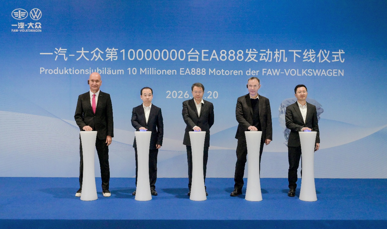 【中国汽车趋势网讯】2026年1月20日,渤海之滨,大连。在一汽-大众动力总成事业部大连EA888生产车间内,伴随着装配线流畅的运转声与现场热烈的掌声,一台熠熠生辉的EA888发动机缓缓下线,这标志一汽-大众第1000万台EA888发动机里程碑顺利达成。这一历史性时刻,不仅铭刻了大连这座先进制造基地二十一年来的卓越足迹,更彰显了一汽-大众在激烈市场竞争中深厚的体系实力与稳健的发展定力。