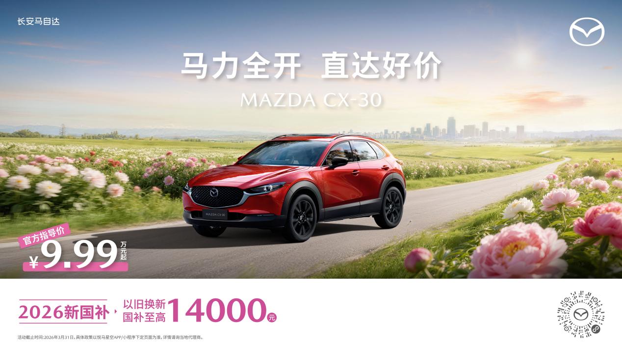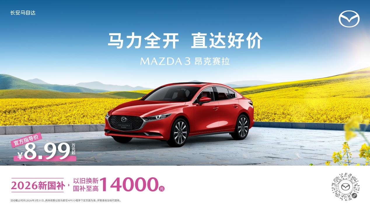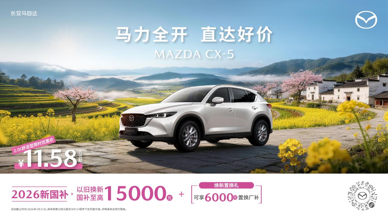 此外,长安马自达多款热门车型同步奉上新春福利:MAZDA3昂克赛拉全系8.99万起,购车可享至高14,000元以旧换新国补;MAZDA CX-5全系限时11.58万起,至高可享15,000元以旧换新国补;MAZDA CX-30全系9.99万起,叠加至高14,000元以旧换新国补,覆盖不同消费需求,让更多用户轻松坐拥品质座驾。