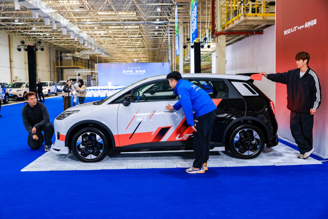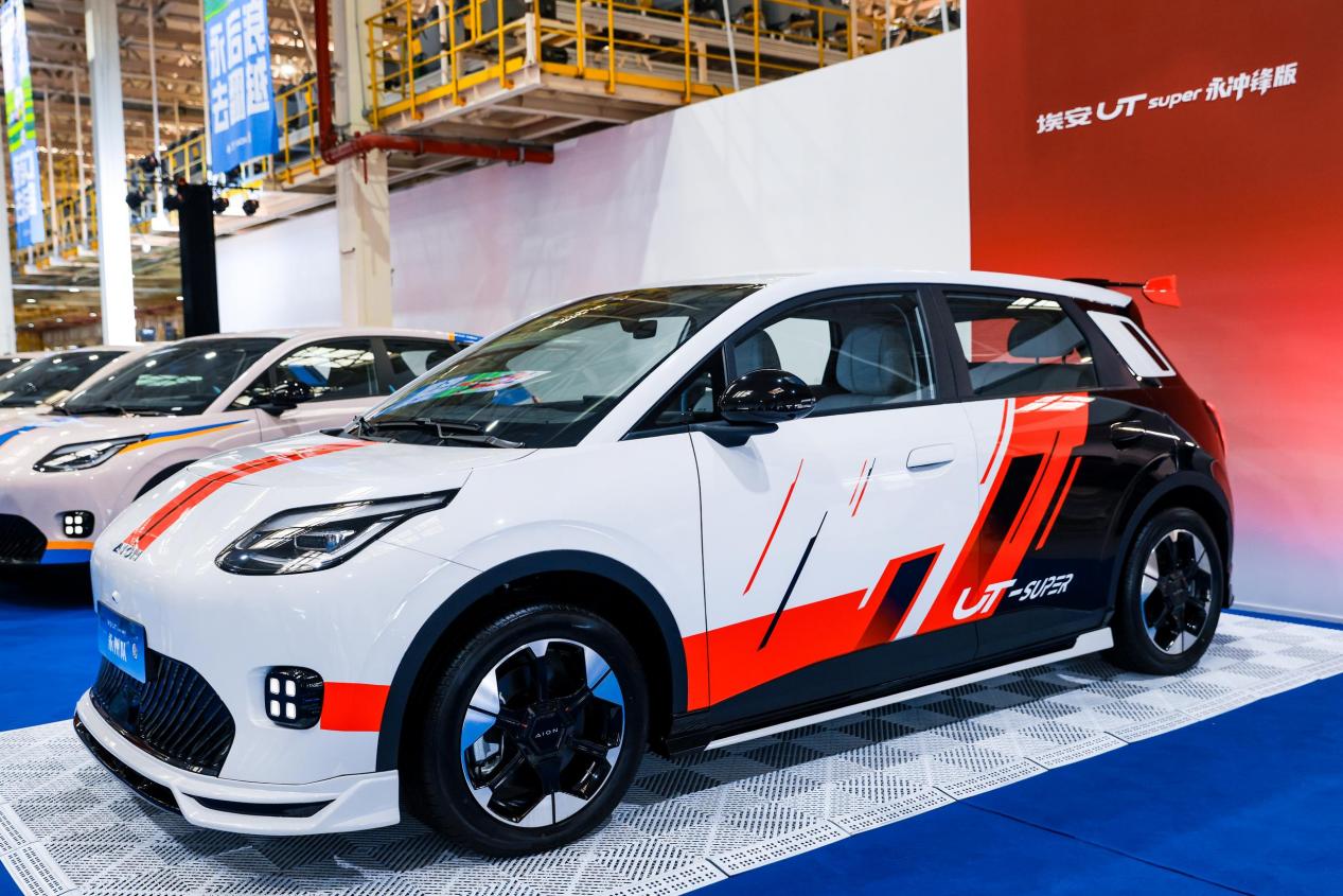 作为A0级纯电市场的“全能王”,埃安UT Super集四大硬核实力于一身:5万级唯一可充可换可升级,搭载宁德时代巧克力换电技术,实现500公里续航与99秒极速换电,日常使用一周一充,省时省力;2750mm越级轴距带来“国民空间王”的越级享受;华为云车机让座舱秒变“电竞房”,极速响应不卡顿;540°全景影像与倒车防误踩系统则构筑起“国民避障王”的安全防线。“永冲锋”三个字,将这份产品力与永州队逆袭夺冠的热血精神高度契合,成为广汽埃安“为国民造好车”理念的具象表达。