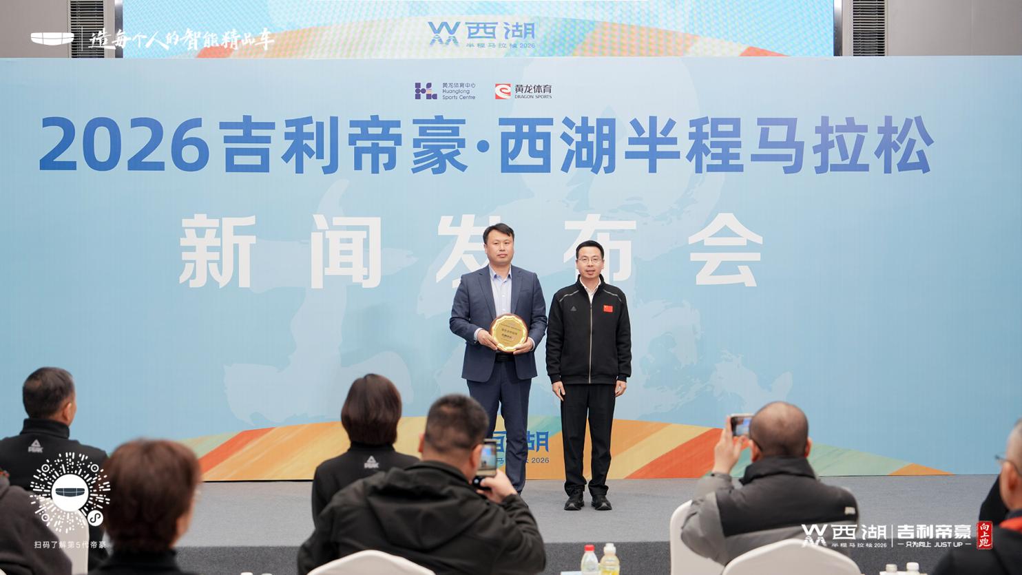 跃马西湖,只为向上。3月13日,2026吉利帝豪?西湖半程马拉松新闻发布会在浙江省黄龙体育中心隆重举行。