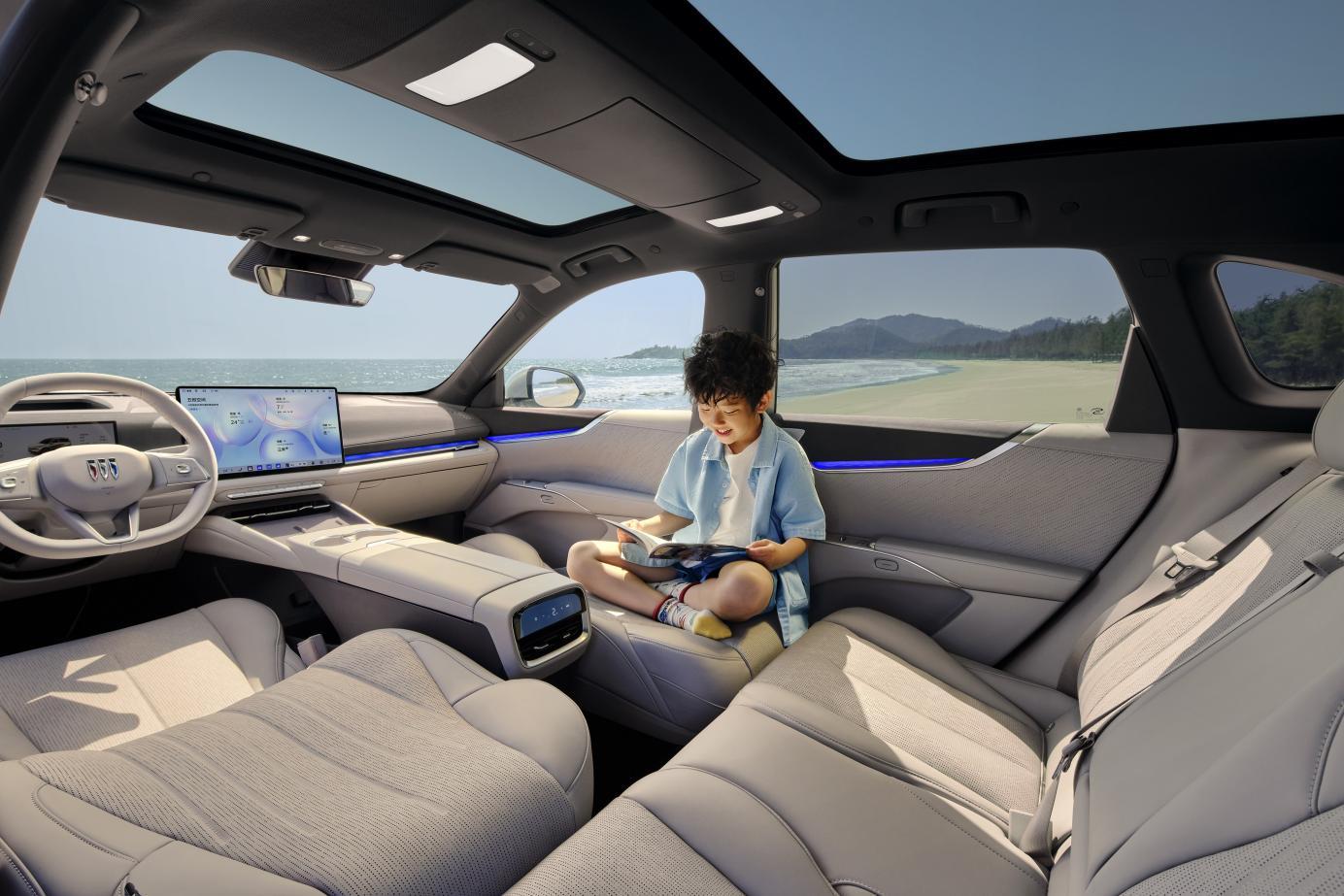 别克至境E7以全维超满配价值,将悉心呵护融入每一处细节,匠心打造专属「孩子的满分座舱」。依托别克至境世家同源黑科技,别克至境E7拥有同级唯一五恒健康座舱,以恒温、恒湿、恒氧、恒洁、恒静的健康生态,为孩子构筑清新静谧的健康舒享空间。同级唯一四座悬浮层座椅,甄选OEKO-TEX®母婴级健康认证材质,从源头杜绝甲醛、重金属等有害物质,婴幼儿零距离接触或啃咬亦安然无忧。二排同级唯一南德TÜV认证护眼智慧顶灯,协同全车同级唯一三屏莱茵TÜV低蓝光护眼认证,从光源到屏幕,全方位守护孩子清澈视界。银离子保鲜冷暖箱具备长效抑菌除臭功能,让孩子的饮品与辅食安享洁净。空间方面,别克至境E7拥有同级领先的儿童二排可站立空间,1.2米孩童可轻松站立换装,于车内自在舒展天性。