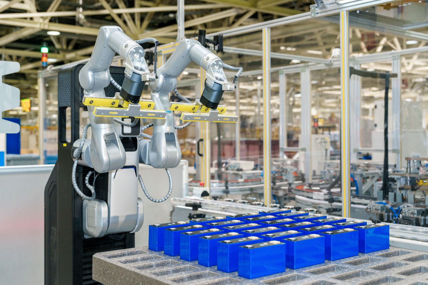 - 拟人作业:依托“智元A2-W”的强大基座,“能仔1号”具备视觉感知、双臂协同和力控抓取等拟人能力,可自主识别电芯、智能规划抓取路径,无需依赖固定编程和来料的精确定位即可完成作业,实现了安全、稳定的量产作业。
