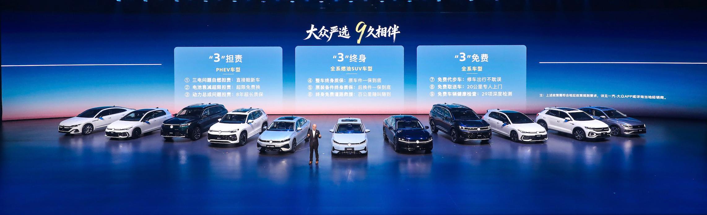 作为拥有35年积淀、超3000万客户基盘的合资标杆企业,一汽-大众依托雄厚实力与完善的服务体系,将严选品质化作长久陪伴,为客户带来大厂独有的确定感。在本次发布会上,一汽-大众还重磅推出“大众严选9久相伴”专属承诺,依托“三担责、三终身、三免费”9项承诺,为客户提供全生命周期可靠保障,以十足诚意彰显领军品牌的责任与担当。