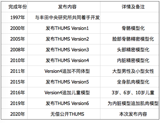 “THUMS自2000年诞生以来,经过不断改良,尽可能地还原人体结构,设置不同种类模型。现如今THUMS已是丰田安全技术及车辆开发中不可或缺的存在。本次决定无偿公开THUMS,希望让更多的用户使用THUMS,提升汽车行业整体的车辆安全性能,助力实现交通事故零伤亡的安全社会。我们期待THUMS能够在自动驾驶等未来出行社会开发环节得到广泛运用”。