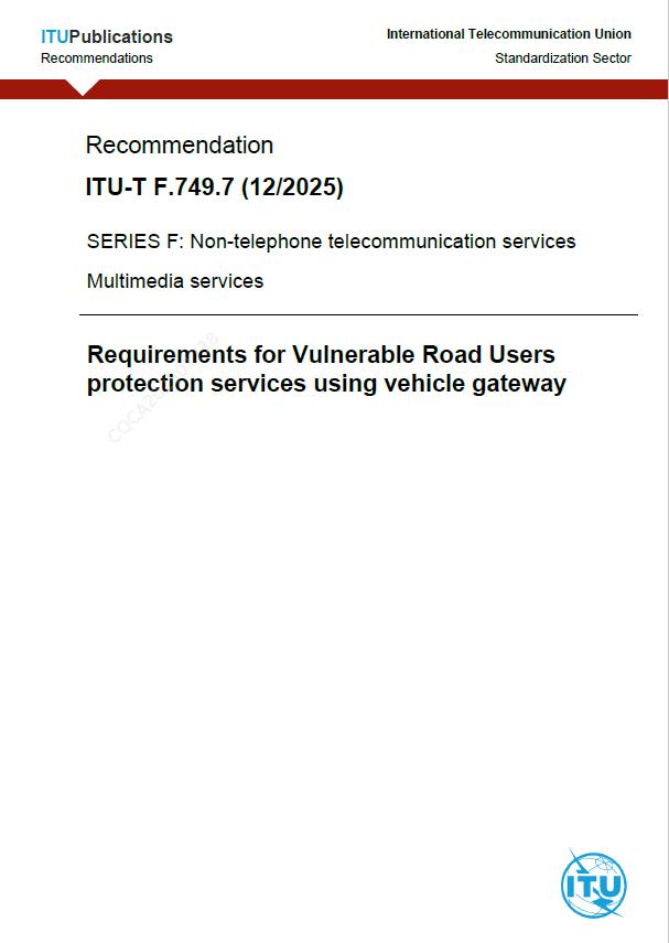 ITU-T F.749.7《基于车载网关的弱势交通参与者保护应用要求》