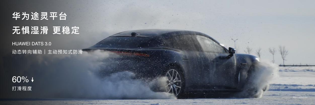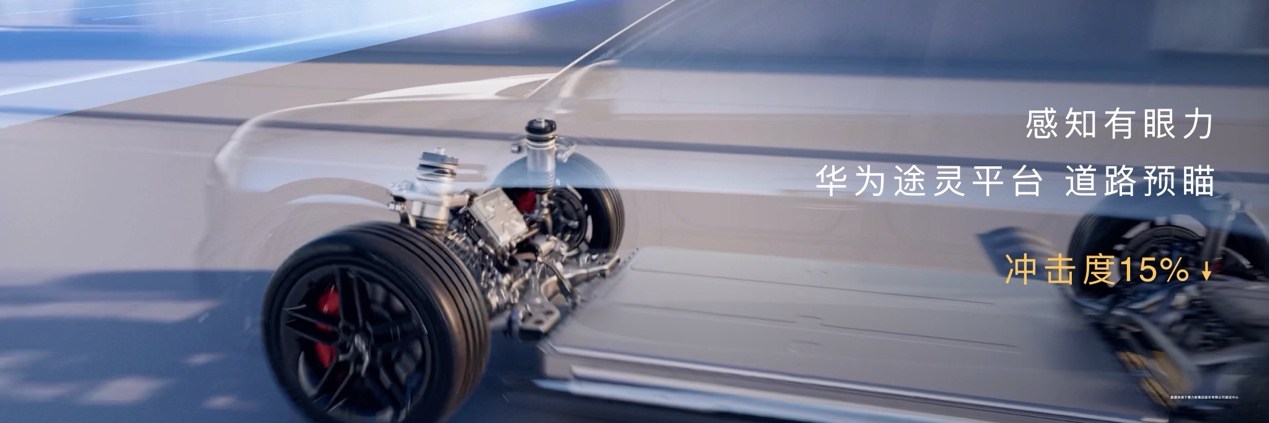 全系标配华为途灵平台,前双叉臂、后五连杆独立悬架,搭配闭式空气悬架与连续可变阻尼减震器,行驶更舒适。前四活塞固定式刹车卡钳,百零刹停距离仅33.8m。道路预瞄,冲击感降低15%;HUAWEI DATS 3.0使打滑风险降低60%。御水缓行模式应急涉水深度700mm。搭载猫头鹰极致转向,最小转弯半径5.5m。