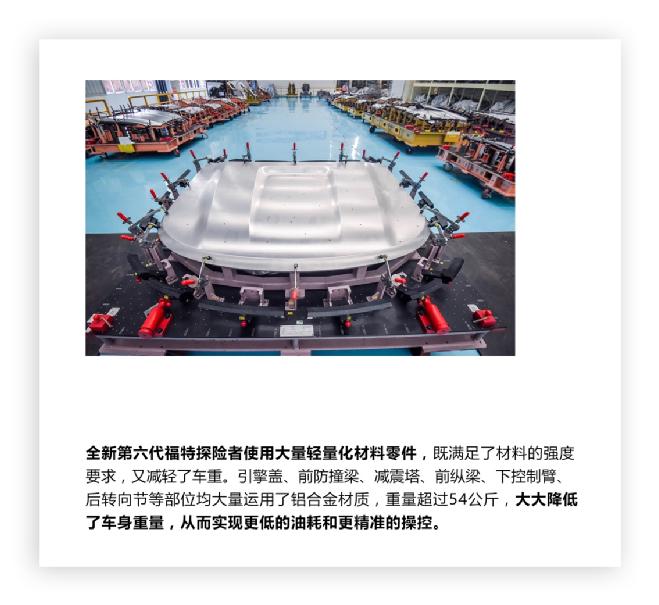 从这条生产线走下的全新第六代福特探险者的全铝合金引擎盖,具有确保不变形、防止回弹、关闭力小、密封性好等领先优势,够“硬”够强大。