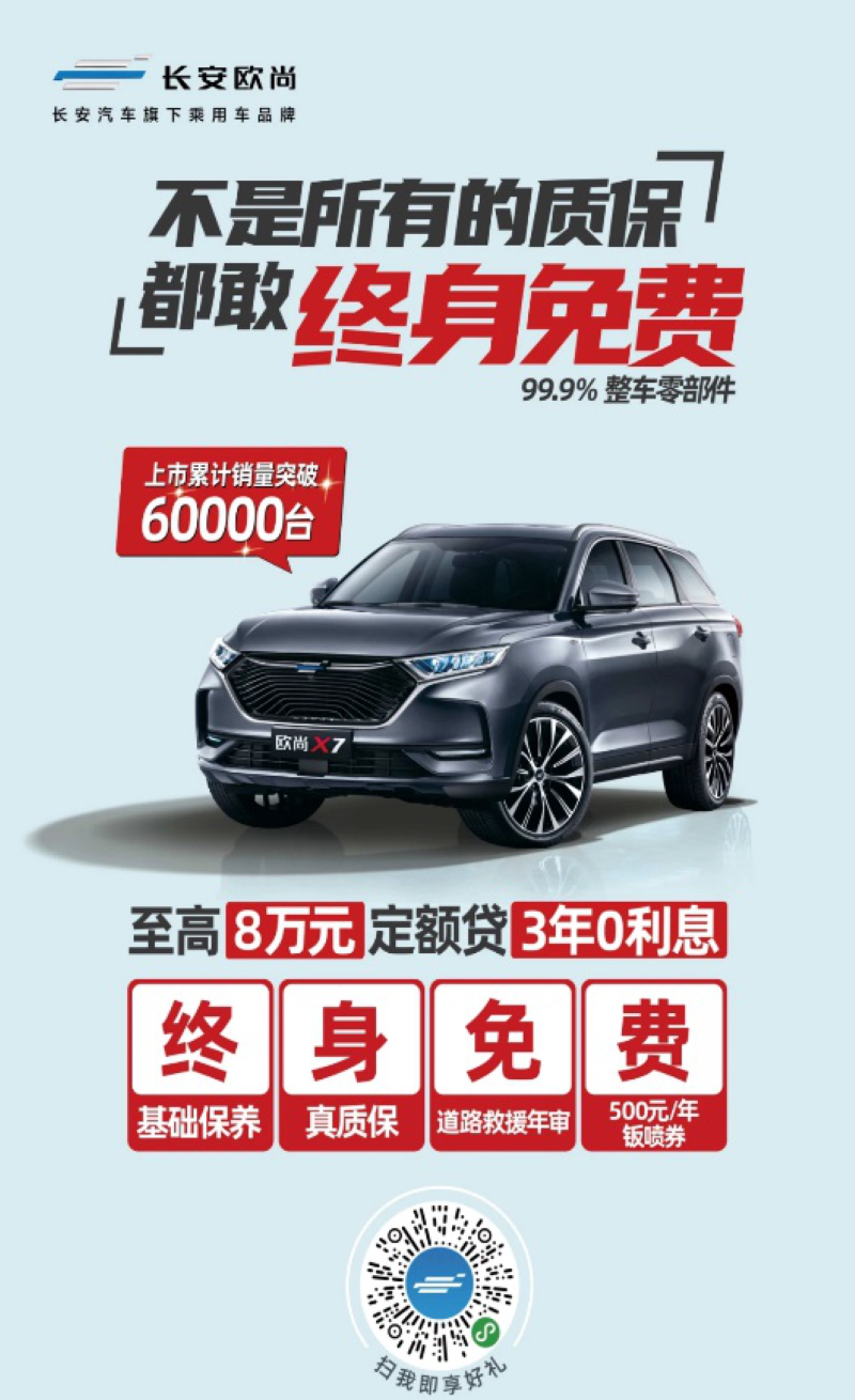 更放心——购长安欧尚X7享终身免费基础保养、终身免费真质保