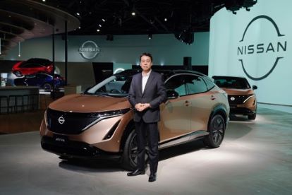 在位于日本横滨的日产互动体验馆 (Nissan Pavilion)举行的日产Ariya全球云首秀上,日产汽车公司首席执行官内田诚(Makoto Uchida)先生和日产汽车公司首席运营官古普塔(Ashwani Gupta)先生共同向全球观众展示了日产Ariya。