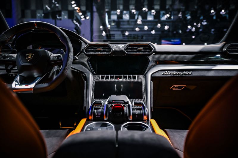 全新Urus珍珠漆特别版是Urus车型的首个专属特别版车型,由兰博基尼Centro Stile设计中心倾情呈现,完美诠释超级SUV车型独树一帜的风格和超凡性能表现。Urus珍珠漆特别版采用鲜明的双色外观配色方案,漆面采用四层喷漆工艺的亮面珍珠漆,有Giallo Inti(黄色)、Arancio Borealis(橙色)和Verde Mantis(绿色)三种颜色选择,并搭配亮黑色车顶、后扰流板、后扩散器及其它装饰细节。极具动感的哑光灰色排气管外观与采用车身颜色细节装饰的23英寸亮黑色轮毂完美搭配。车辆内饰采用独特的双色配色方案,搭配座椅上的六边形Q-Citura缝线和兰博基尼盾形刺绣标识,以及碳纤维和黑色阳极氧化铝细节。带有通风功能的Alcantara材质全电控座椅是珍珠漆特别版的专属可选配置,带来超凡舒适体验。