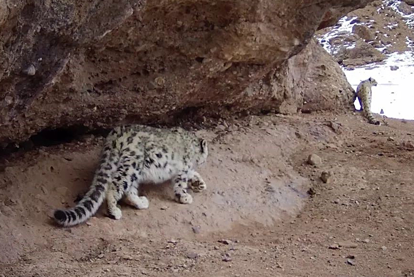 生物多样性监测过程中拍摄到的珍贵雪豹画面