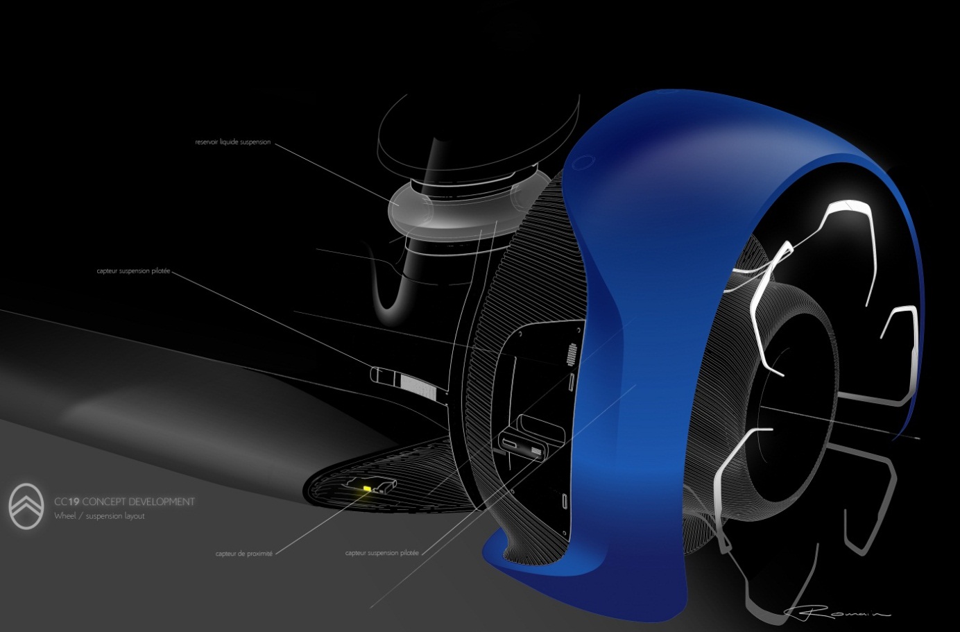 19_19概念车的车轮是雪铁龙与固特异合作研发设计,采用创新技术设计的车轮,美观大方。30英寸的超大尺寸车轮,直径930毫米搭配255/30 R 30轮胎,展示出极具先锋意味的独特风格。创新的无缝连接的轮毂与轮胎,带来车辆仿若在独立球体上前行的未来感。