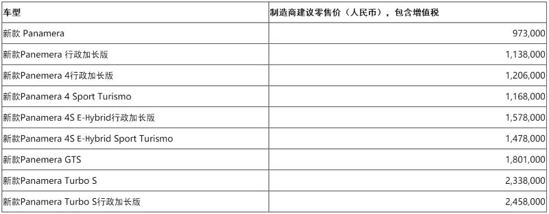 新款Panamera首批共发布9款车型,提供后驱和四驱两种驱动方式,以及燃油和插电式混动两种动力形式,同时覆盖标准轴距、长轴距和Sport Turismo三种车身形态,充分满足不同客户的个性需求,现已全面启动预售。