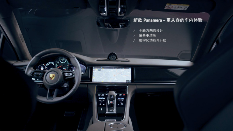 保时捷通讯管理系统(PCM)加入了更多数字功能与服务,例如经过升级的智慧副驾在线语音控制、Apple® CarPlay及许多其他智慧互联服务。新款Panamera还配备了丰富的创新照明和辅助系统,例如:标配的车道保持辅助系统、自适应巡航定速控制系统、夜视辅助系统、车道变换辅助系统、带保时捷动态照明系统升级版(PDLS Plus)和矩阵光束的LED大灯、带全景影像系统的停车辅助系统、抬头显示系统等。