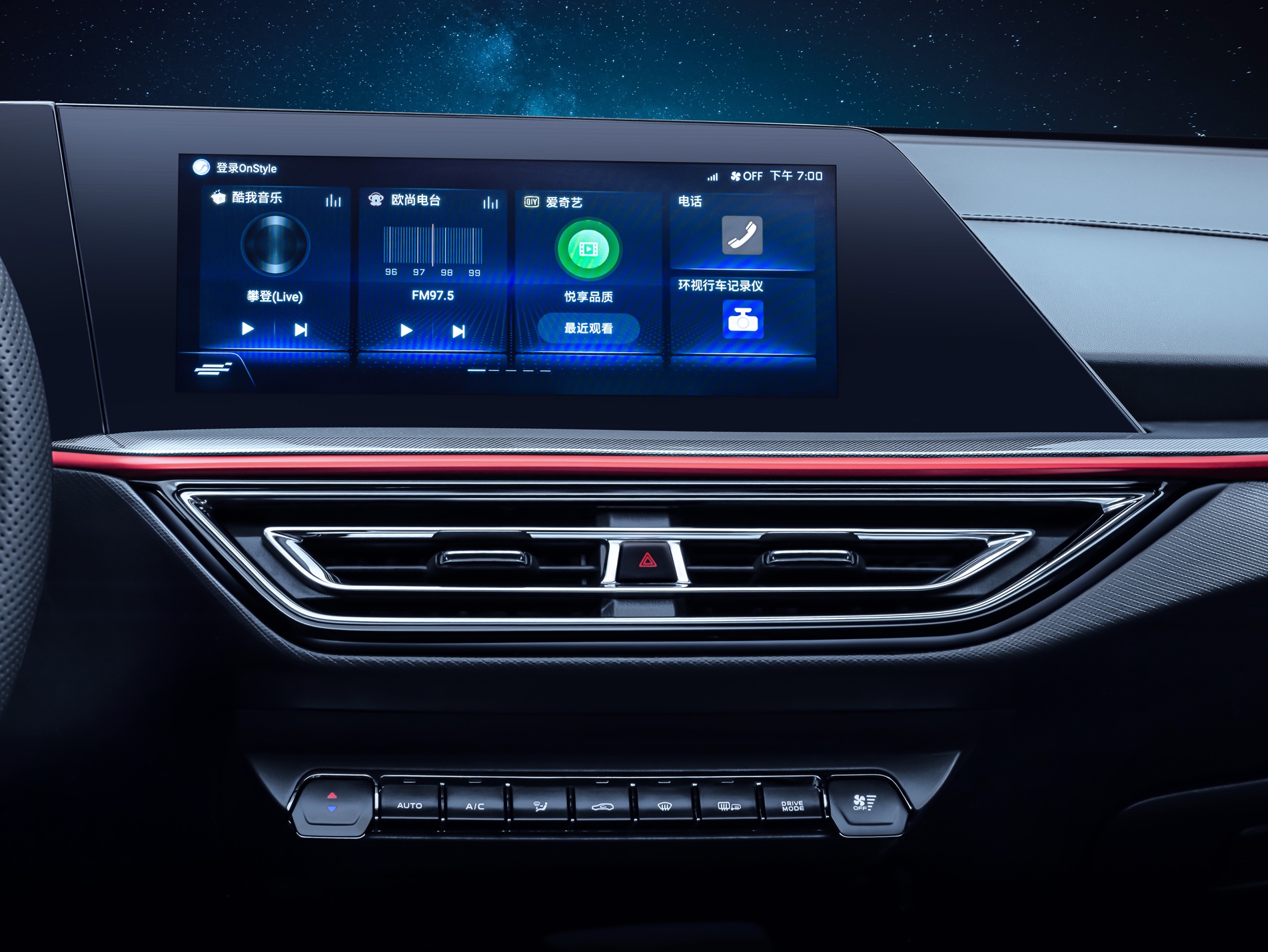 中控台竞速红色光带,运动感始终贯穿在长安欧尚X5的内饰设计中,中控台在使用不规则图形的同时,用一条竞速红色光带将中控元素串联了起来,让整个内饰充满了潮酷进击风。