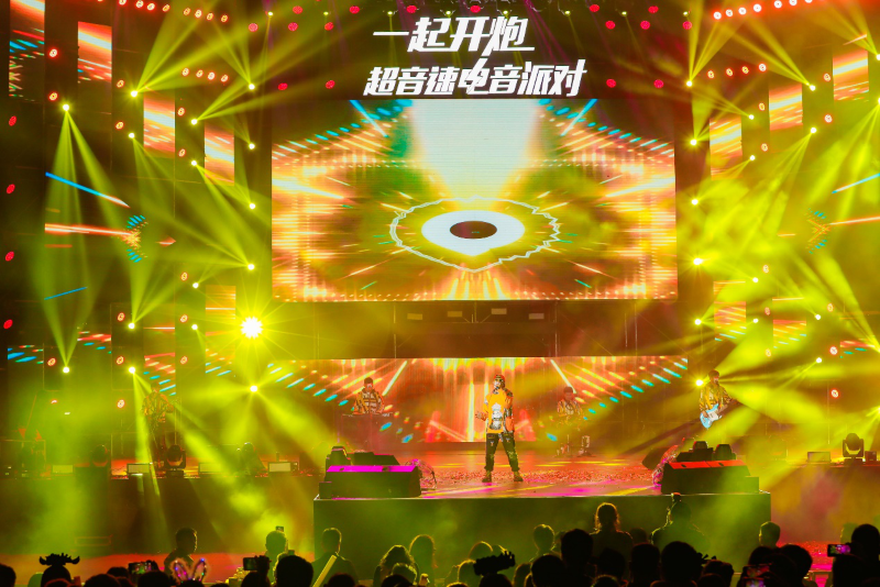 活动现场,精彩节目不断,俊男靓女,即刻开“嗨”。新流派Ipad留声机乐队及聚丙乐队先后十余首歌曲上演电音轰趴,台上电音流动,台下荧光闪烁,全场观众跟着节拍动感舞动,让重庆微凉的夜空瞬间热情高涨。而吉克隽逸三首成名曲联唱,更是将现场不断推向高潮,打造了一场真正的嗨玩儿盛宴。