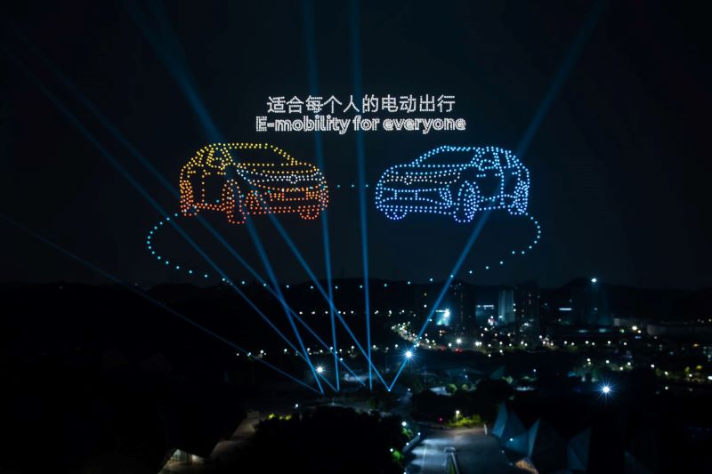 不仅如此,无人机还组成了高达147米的大众汽车品牌标徽,这也是整场表演中位置最高的图案。随后,专为中国设计且融合大众汽车品牌ID.字母和汉字“我”的ID.品牌标志性标识在空中显现,为表演划上圆满的句号。该标识代表着大众汽车品牌“自我而始”活动的核心,鼓励用户以在电动出行领域改变玩法。