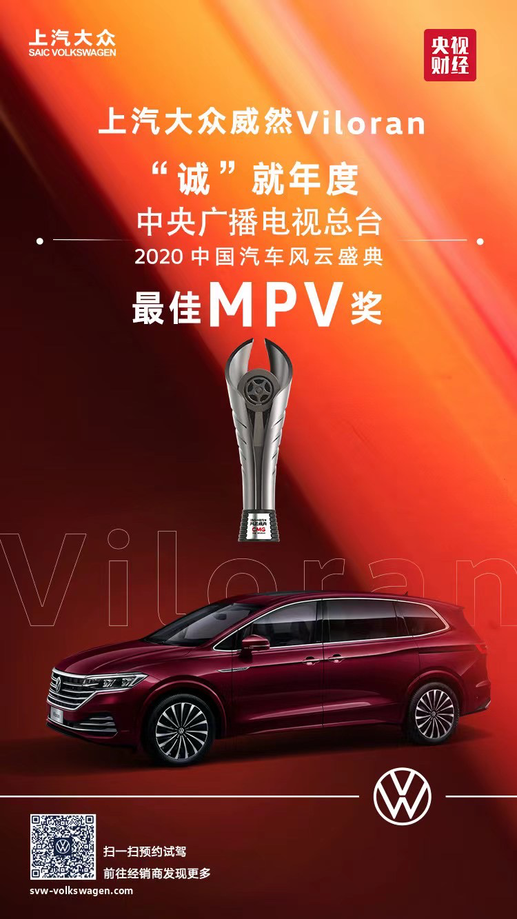 2020中国汽车风云盛典旨在展现中国汽车产业年度风采,提振汽车消费,助力中国汽车产业在高质量发展的快车道上行稳致远。威然凭借对MPV市场中高端化趋势的洞察,打造“新商务”出行,更精准地捕捉消费者的需求,以出色的产品力获得了本次的年度最佳MPV奖项。