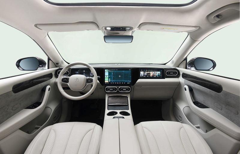 零跑C11作为零跑汽车首款纯电高端SUV,定位“全球实力中场SUV”,超长轴距达到2930mm,车内配置超高清三联屏来打造沉浸式“精装智能双客厅”驾乘体验;NEDC最大续航里程超过600km,双电机四驱版百公里加速可达4秒级。采用豪华级前双叉臂、后五连杆的独立悬架系统,配备领先于同级的Leap Pilot 3.0可实现共计22项智能驾驶辅助功能。