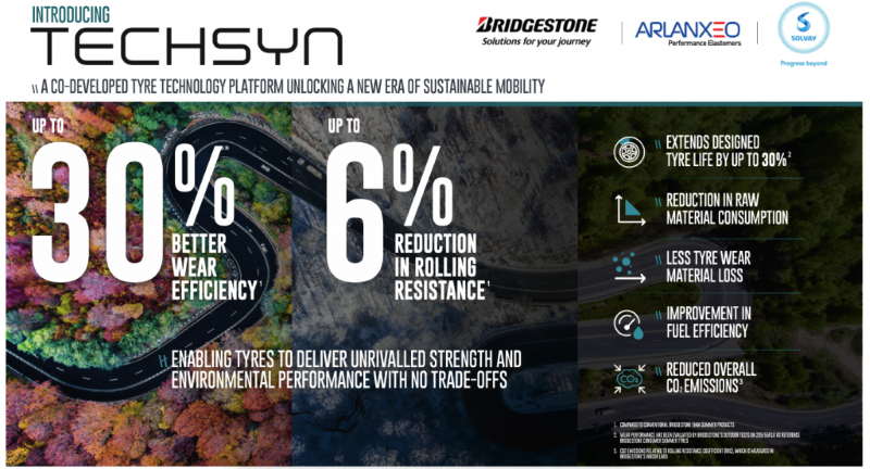 普利司通计划将TECHSYN投入量产,并应用于多种轮胎类别和车辆。通过紧密协作,普利司通、阿朗新科和索尔维已制定了一个技术路线图,并沿用TECHSYN模式,致力实现共赢并创造更大的协同效应。