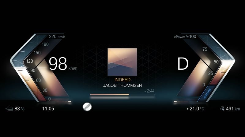 全新BMW iDrive使用了全新的设计语言——大胆的图形设计、未来感的画面质感、以及丰富的光影效果。全新的BMW曲面显示屏集成信息显示与控制功能,12.3英寸信息显示屏和14.9英寸控制显示屏合并为一个单元。所有显示屏均具有200 ppi(每英寸像素)的极高图形分辨率,协调地集成到驾驶区域和仪表板中。在仪表盘信息显示和抬头显示系统上,用户可以进行三种不同主题的切换:豪华驾驶、专注运动和简约艺术。基于全新的信息交互原则,车内三个显示屏可以完美配合,提供优化的界面布局和信息展示优先级。
