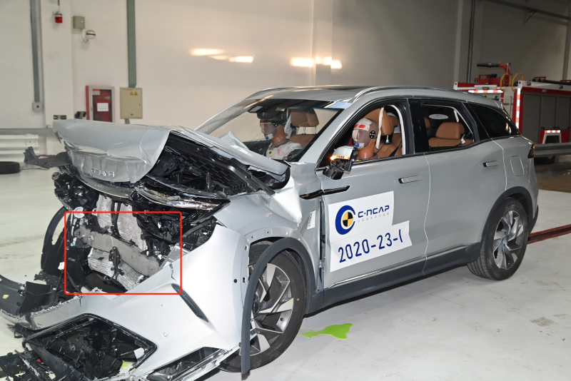 在更为严苛的40%重叠量正面偏置碰撞试验中,BEIJING-X7的笼式结构能有效地将碰撞能量进行疏导,确保了乘员舱完整,A柱纹丝不动。主副驾安全气囊正常弹出前后排贯穿式侧安全气帘的及时弹出有效保护乘员。碰撞后ECALL系统通知远程救援中心以确保及时救援。