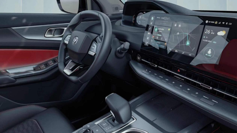 颇具科技感、时尚范儿的外观设计,充分诠释了长安汽车全新设计语言“新科技智慧美学”,而当进入座舱,扑面而来的简约风格彰显格调。拒绝繁杂,一切从简,不仅将内在打造成一个科技有品的空间,更从实际体验上,让一切操作更具功能性。