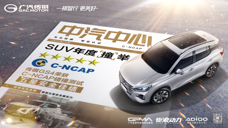 传祺GS4荣膺C-NCAP碰撞测试五星安全认证