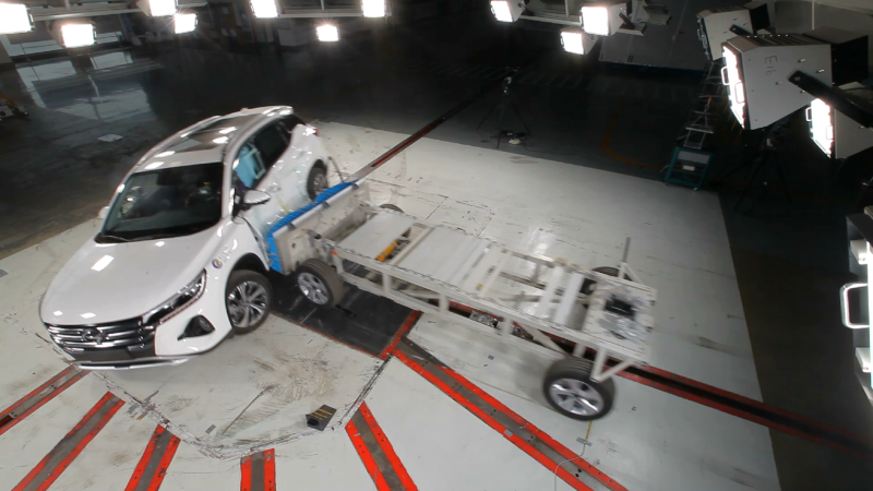40%正面偏置碰撞试验得分18.353分,前防撞梁充分传导碰撞能量,前舱整体溃缩吸能,正侧面安全气囊精准弹开,为车内乘员提供足够优秀的保护,碰撞后四门可轻松开启,充分保障了车内乘员生存空间。