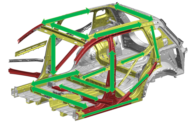 有了一副好的框架,接下来就是“选材”。材质本身的强度构成了汽车整体结构强度的基础和起点,但钢板1+1的简单组合并不能达到最好的强度叠加效果,也要“因地制宜”,在满足碰撞安全性的同时,最大限度地实现车身轻量化。