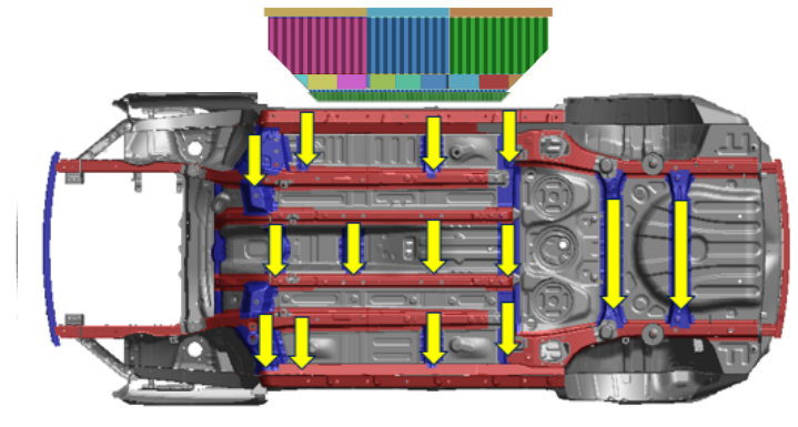 左:5纵5横梁高强度乘员舱 右: B柱中间加强结构