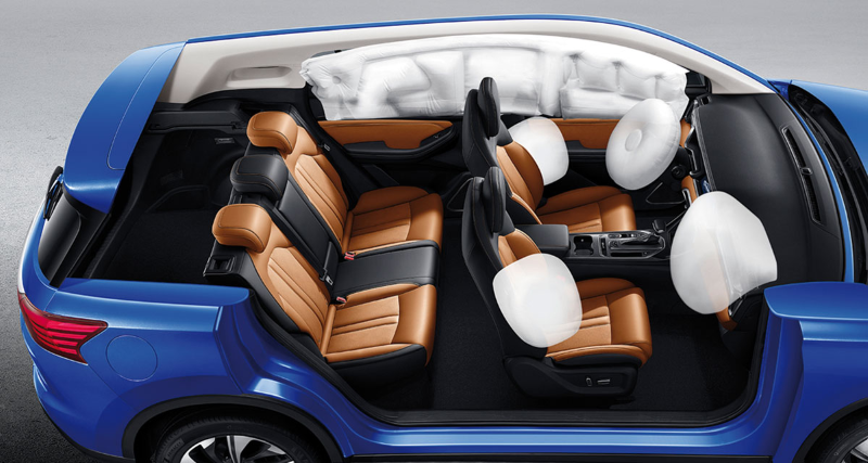 有了车身结构的基础工程之后,还要讲究“外钢内柔”。传祺GS4整车配备6安全气囊,驾驶座及副驾驶座气囊+前排双侧气囊+前后贯穿一体式头部气帘,全方位保障驾乘人员安全。