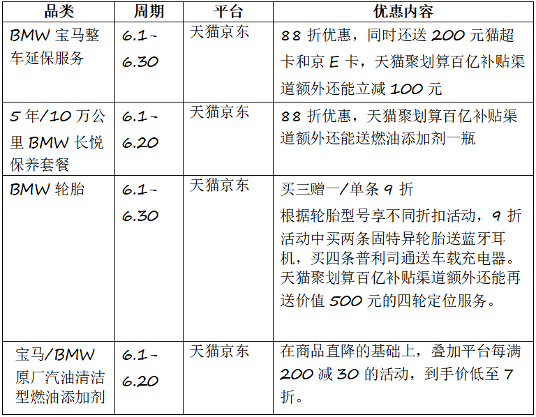 “618”期间BMW天猫、京东官方旗舰店亮点产品/服务一览: