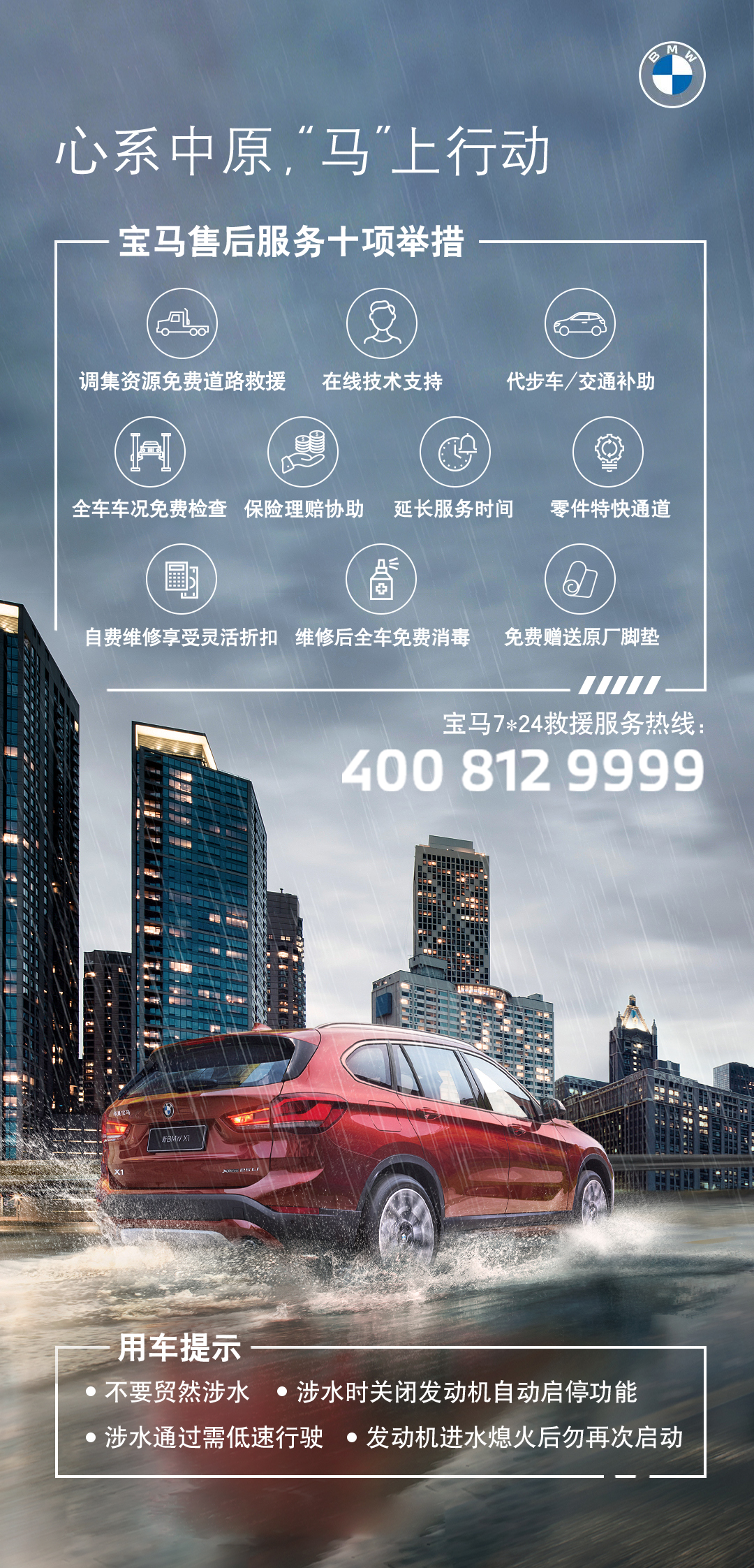 宝马中国及华晨宝马将持续关注防汛救灾工作,助力政府及社会各界救援力量及爱心人士,众志成城,河南加油!