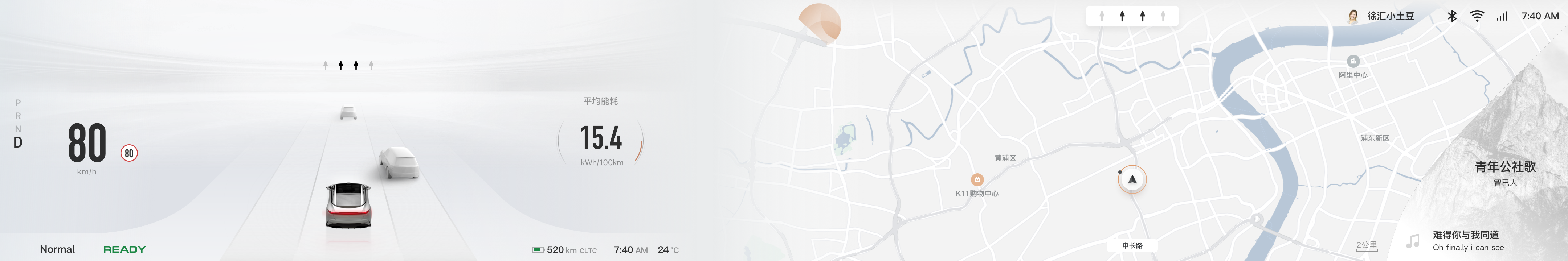 字,针对HMI信息选用宽厚的华康体,在驾驶中则用拉长的独立设计字体让其更适用于驾驶,在不同的场景我们为每一个字的大小和形态都精雕细琢;