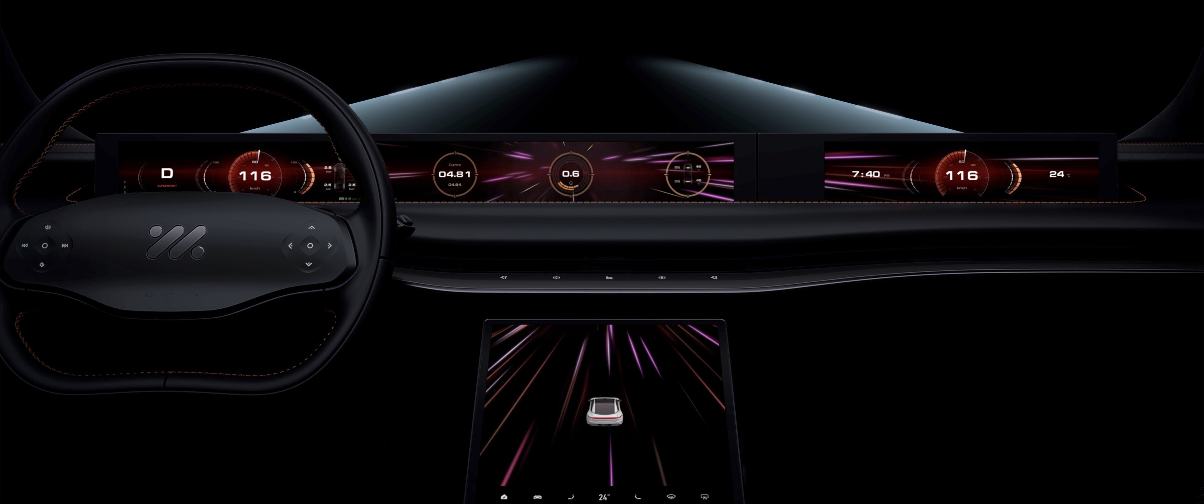 交互功能设计方面,IMOS以跨屏联动打破屏幕的物理极限,将39英寸巨幅智慧场景屏和12.8英寸AMOLED 2K中枢屏完美融合,三屏之间再无界限,视频、音乐等各种功能均可“一指飞屏”,给驾乘者以自由操作、高度流畅的沉浸使用体验。