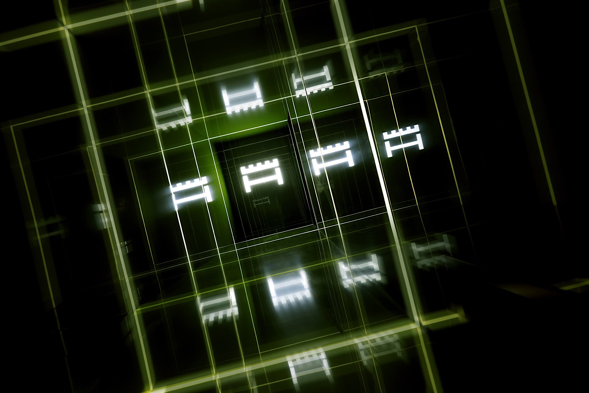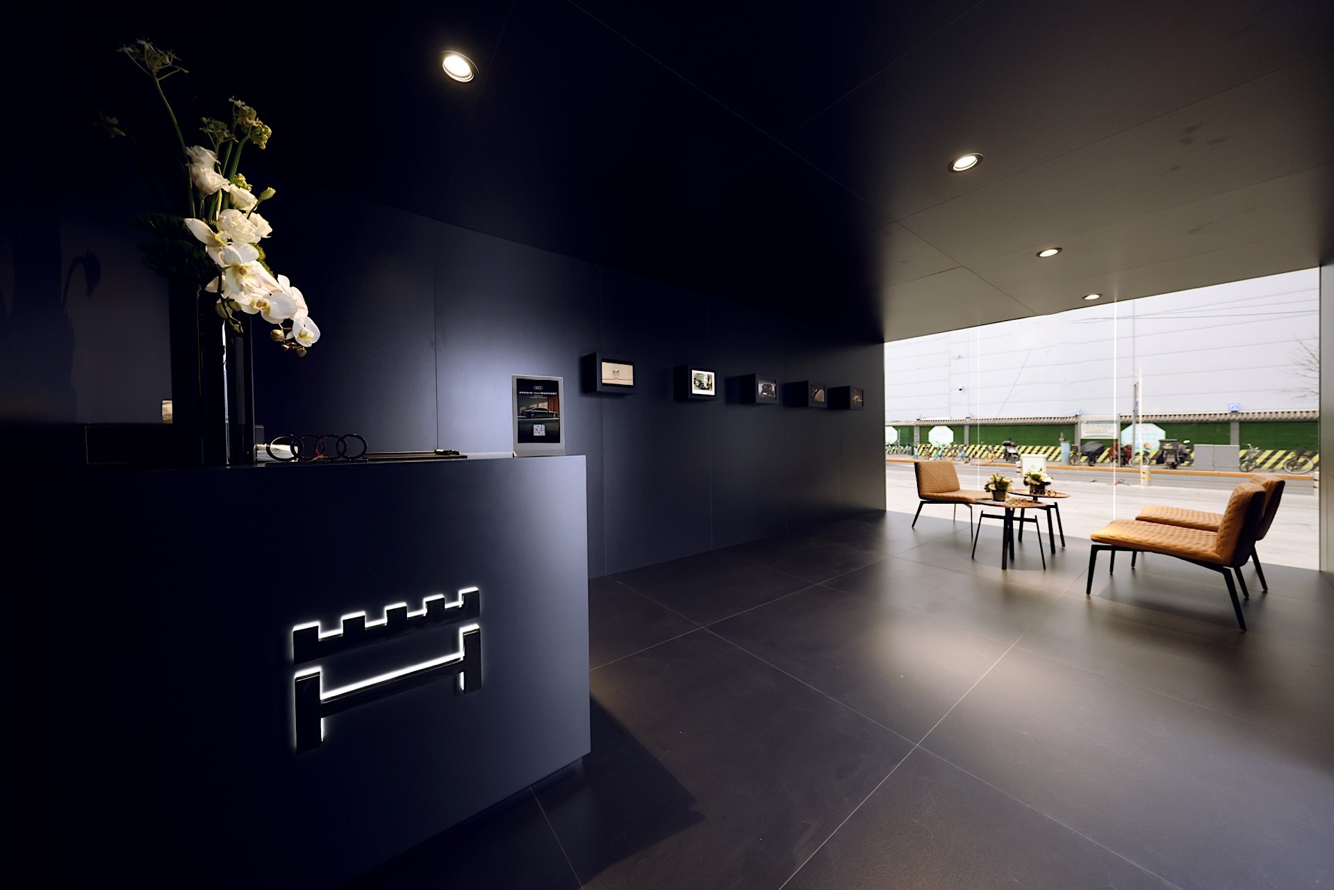 以“H型元素”为灵感创作的外部造型通过两个立方体展示全新奥迪A8L Horch创始人版 “传承经典”和“领启未来”的两个方向,分别呼应橡木绿(Oakgrun)和雨云灰(Nimbusgrau)两款配色,暗空间象征辉煌历史,光空间寓意光明未来。外观设计还充分运用灯光科技,以“数字矩阵式LED车灯”为灵感,将橡木绿色的哑光金属板进行数字化切割,打造富有动感的灯光立面。令人瞩目的全新Horch专属Logo设计还以呼吸灯箱的形式覆盖在展厅外立面,象征创始人精神的永恒闪耀与生生不息。