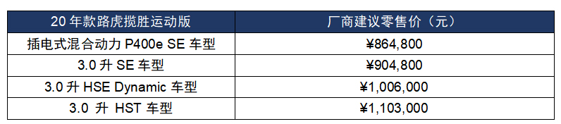 在活动现场,20年款路虎揽胜运动版也正式公布了售价: