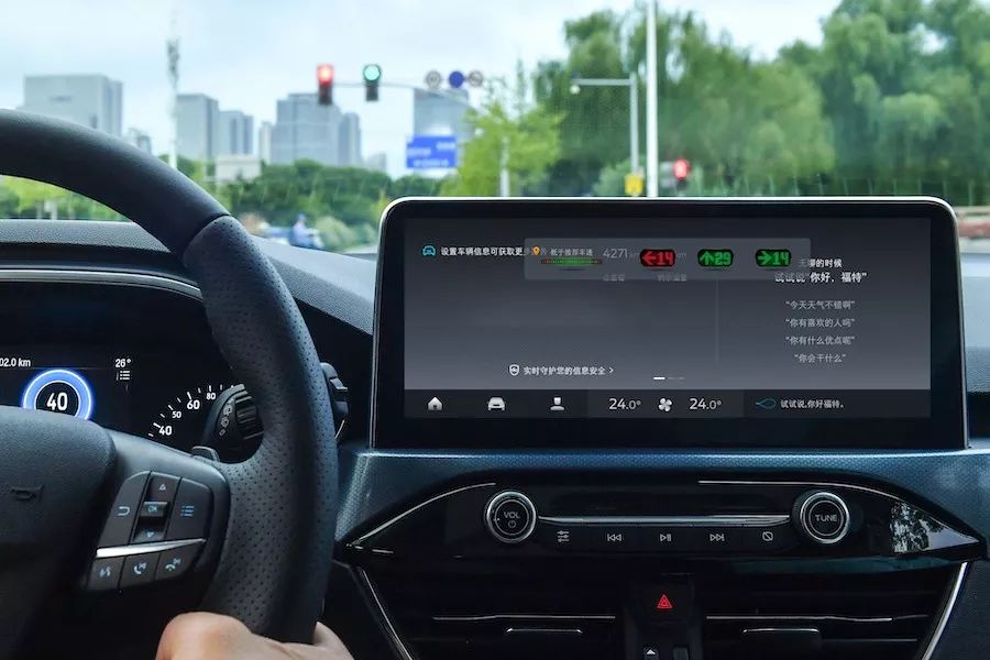 计划上线的V2I预商用功能,如绿波车速引导功能,可通过SYNC+车机屏幕显示,并语音提醒驾驶者在条件允许的情况下按照推荐速度区间行驶可直接通过路口,减少等待红灯时间,既节省油耗又提升整体交通效率;闯红灯预警功能可以使车辆实时接收前方信号灯的状态和剩余时间,结合自身车速、位置等信息做出判断,通过屏幕演示和语音更准确地推送预警信息,避免闯红灯风险。
