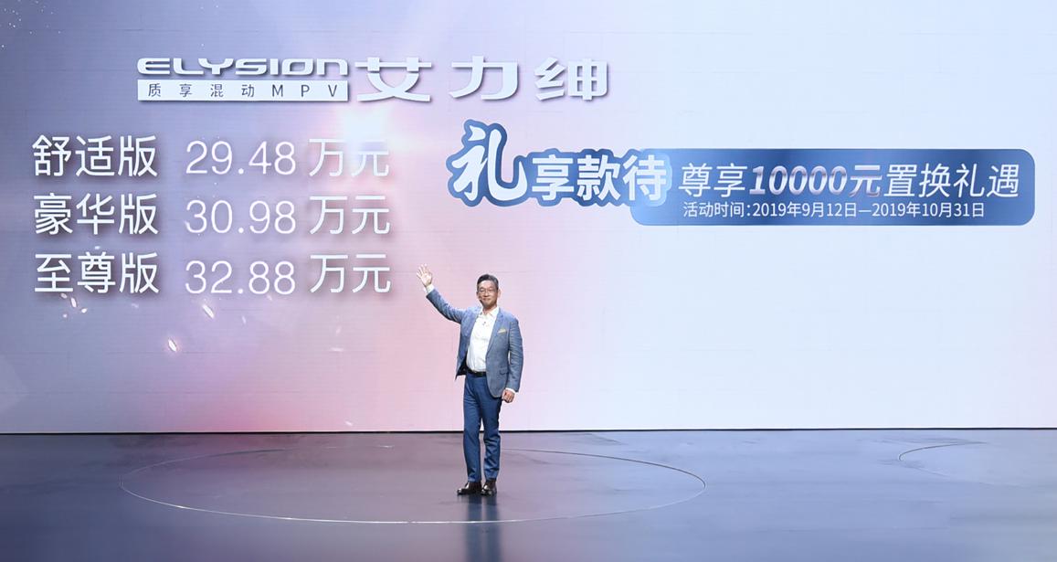 艾力绅锐·混动共推出三款配置,市场指导价29.48万元—32.88万元。为匹配时代绅士人群的消费需求,艾力绅锐·混动上市伊始即同步推出礼享款待:尊享10000元置换礼遇,旨在为他们提供更便利的升级方案。