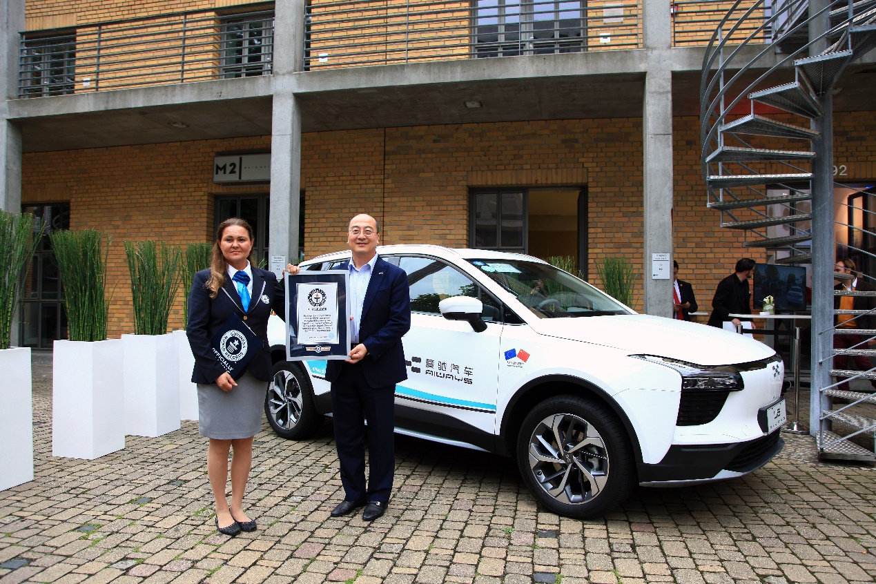 爱驰汽车联合创始人兼董事长付强领取吉尼斯世界纪录证书